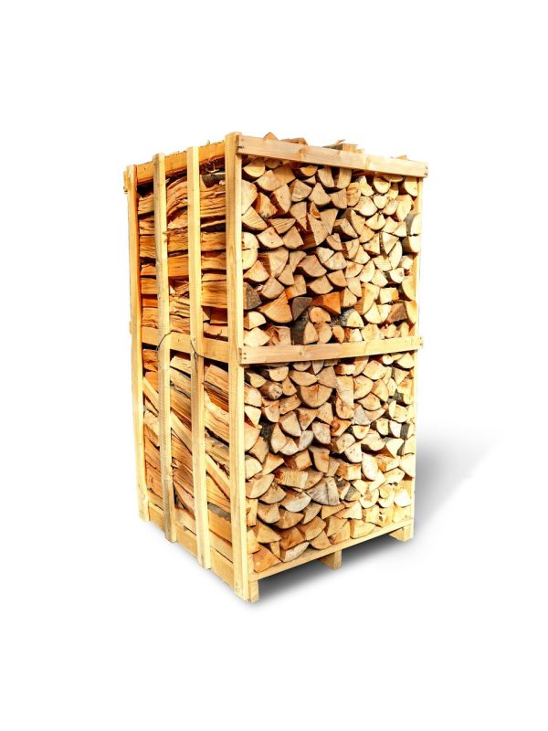HolzBox mit 100 % Buchenholz, trocken, gespalten und sauber aufgesetzt.